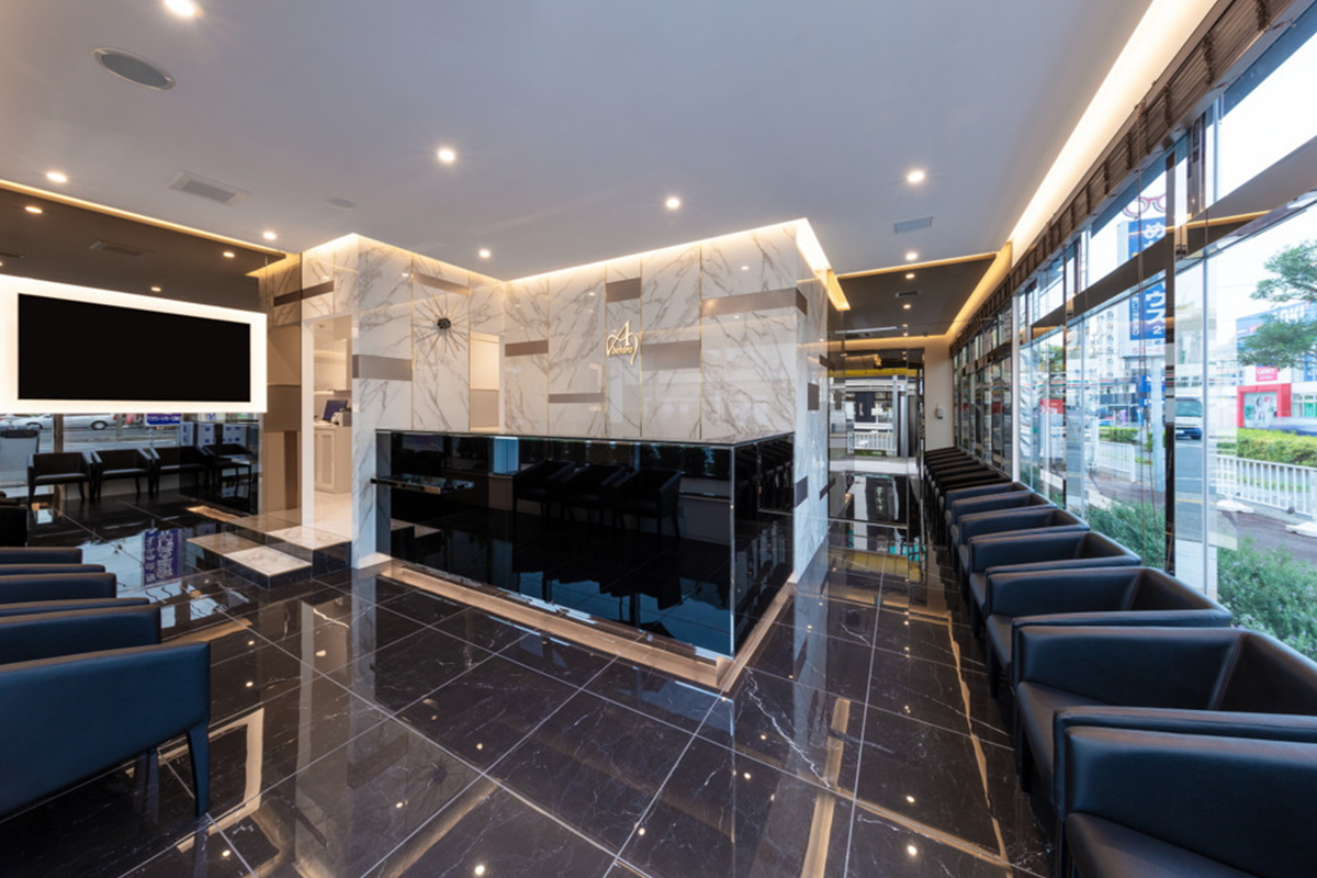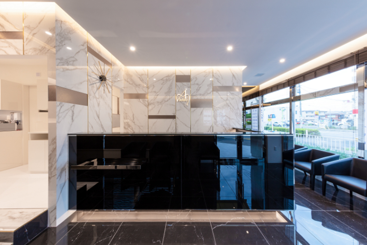 白と黒をベースとした温かくも落ち着いた色調で統一した待合室となっております。